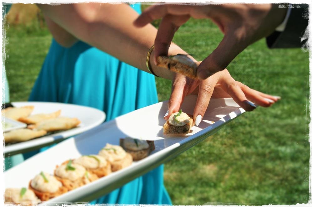 Serving platters served to table at weddings are one of my specialities. They work fantastically well in rustic, outdoorsy settings, and can be more cost-effective than a three-course sit-down meal. Big wooden boards piled high with delicious dishes are placed in the middle of the table, and guests help themselves to as much or as little as they like – the perfect conversation starter!